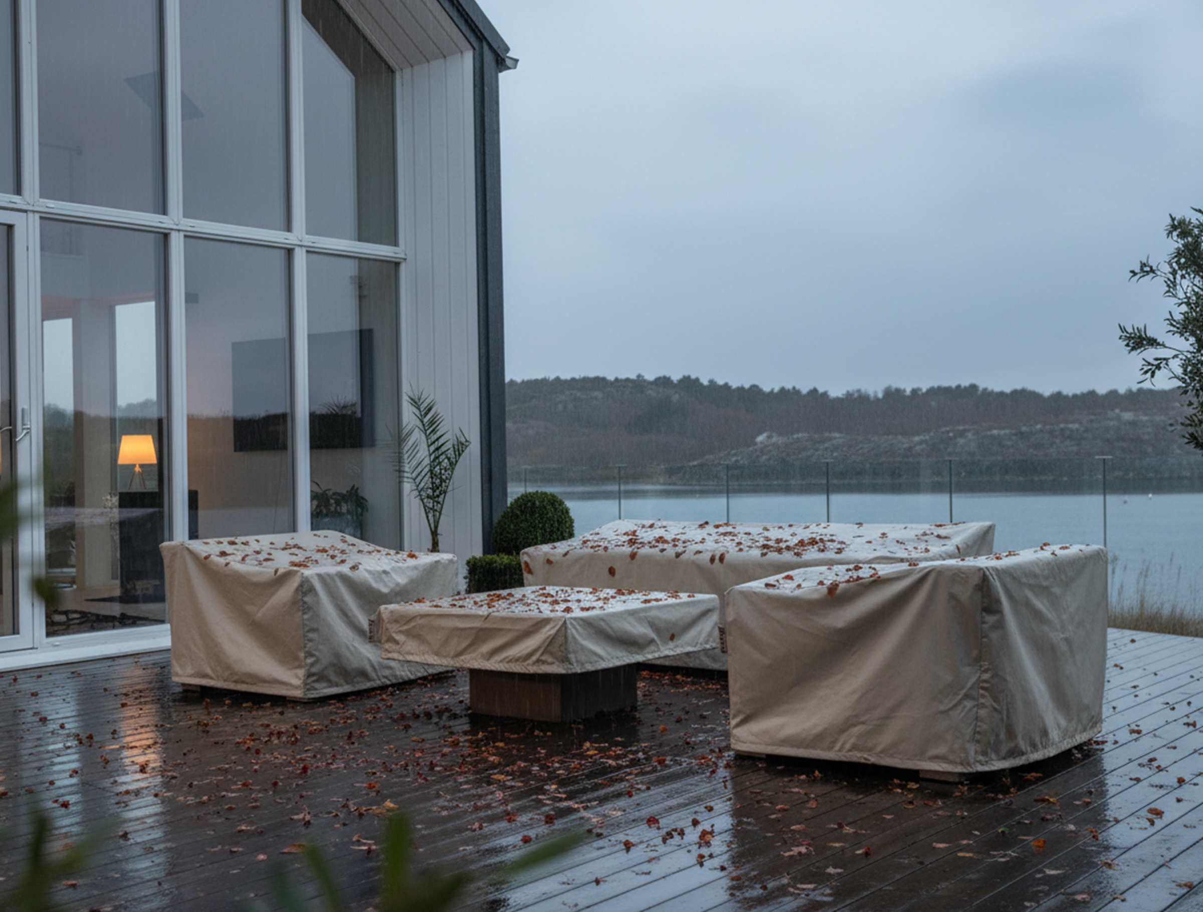 Protect your outdoor furniture from rain, wind, snow and dirt this fall and winter. In spring, when the sun and warmth return, you can continue to use your customized cover and at the same time it becomes smart cushion storage.